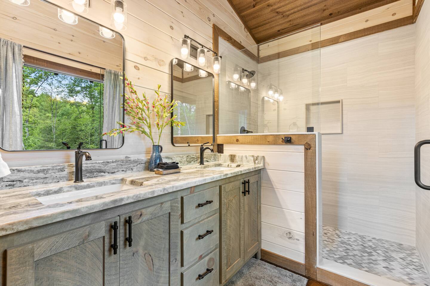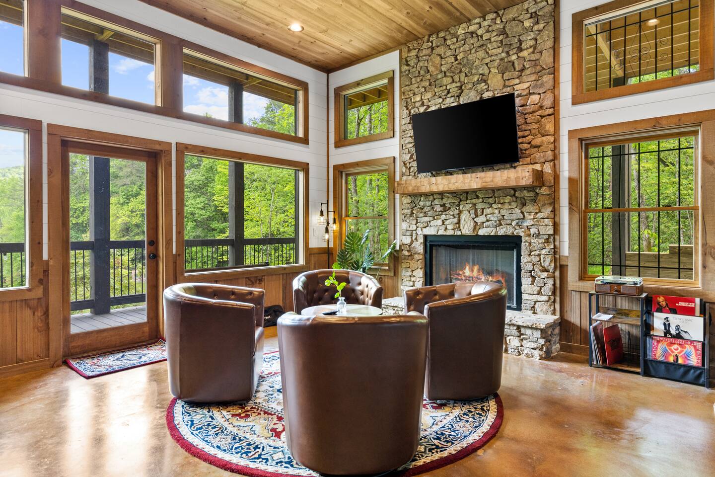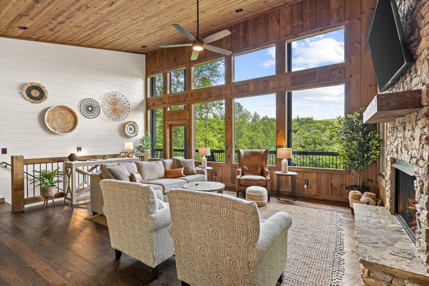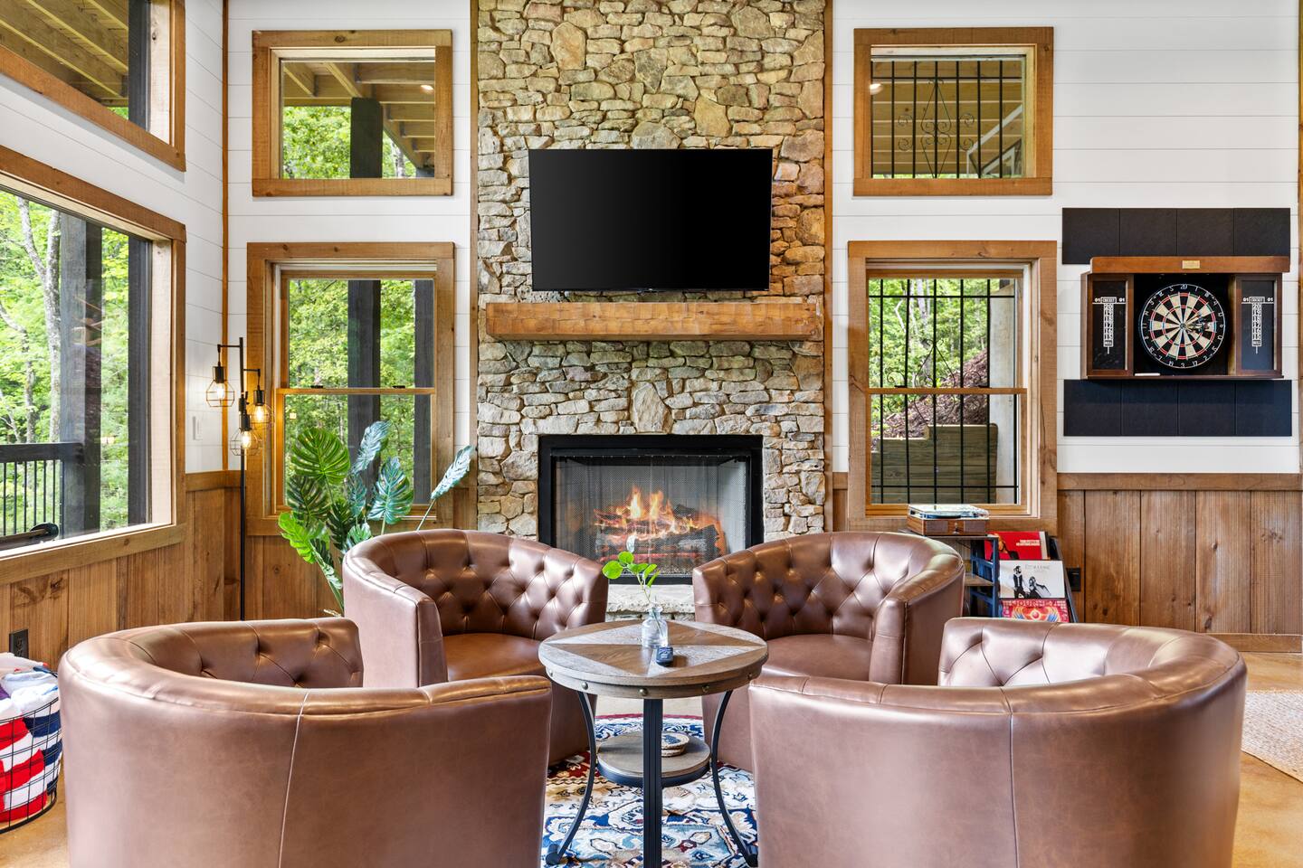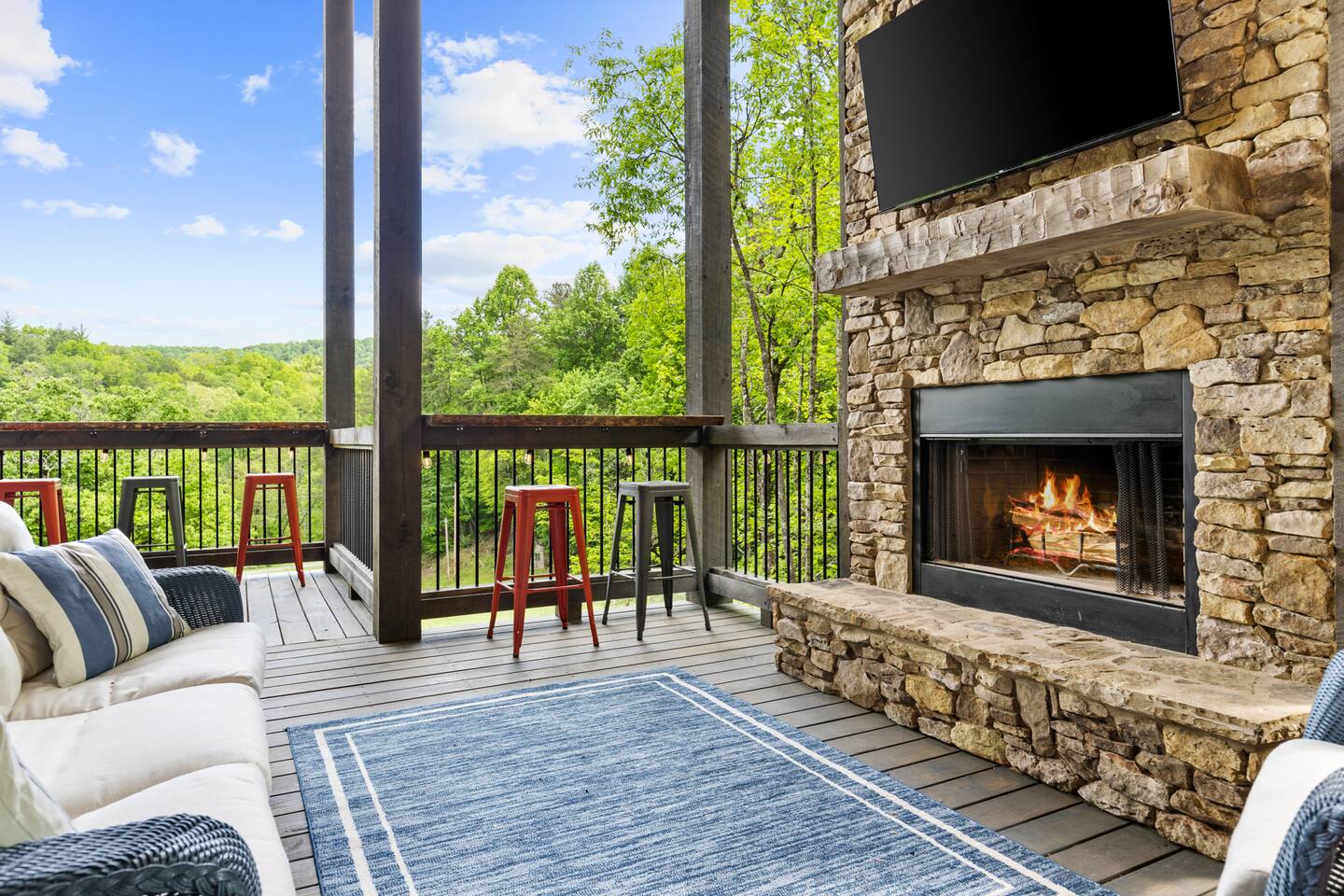 Welcome to Our New Chalet! Located a short, paved picturesque 15-minute drive from downtown Blue Ridge, our new, modern rustic chalet is now open for guests. With soaring ceilings, fire pit, multi-level decks, and three fireplaces, the cabin is designed for comfort and style. There's something for everyone, with a game room, a covered basketball court, and a speakeasy-style lower level where adults can unwind and enjoy classic albums. Be among the first to experience this luxurious retreat!