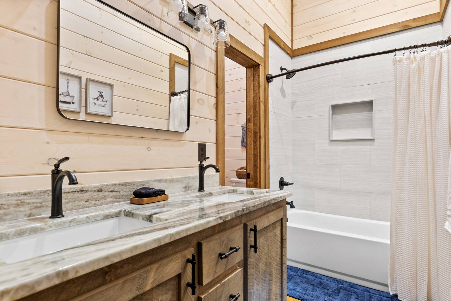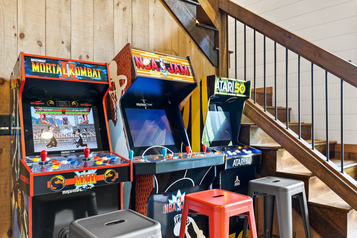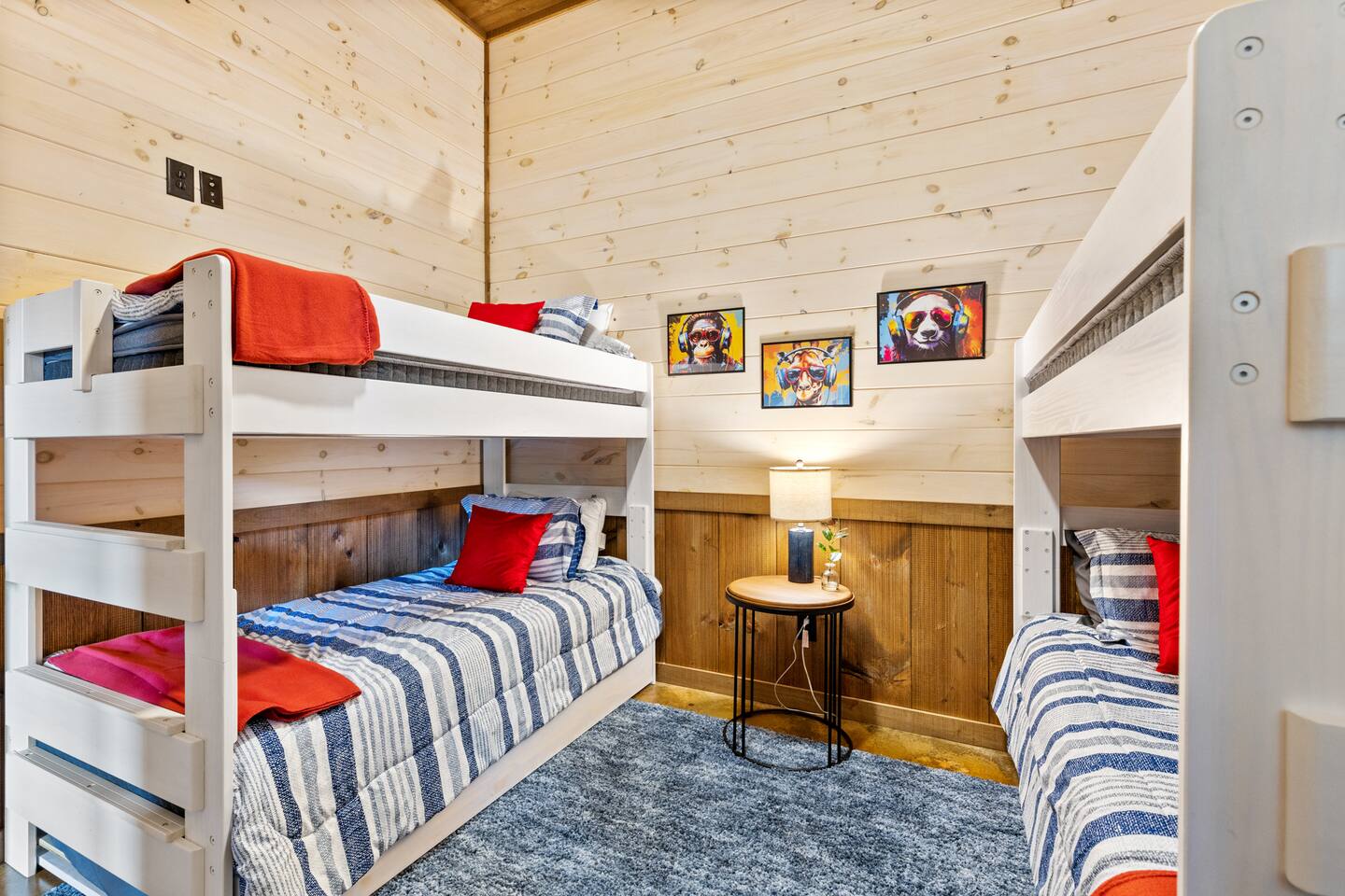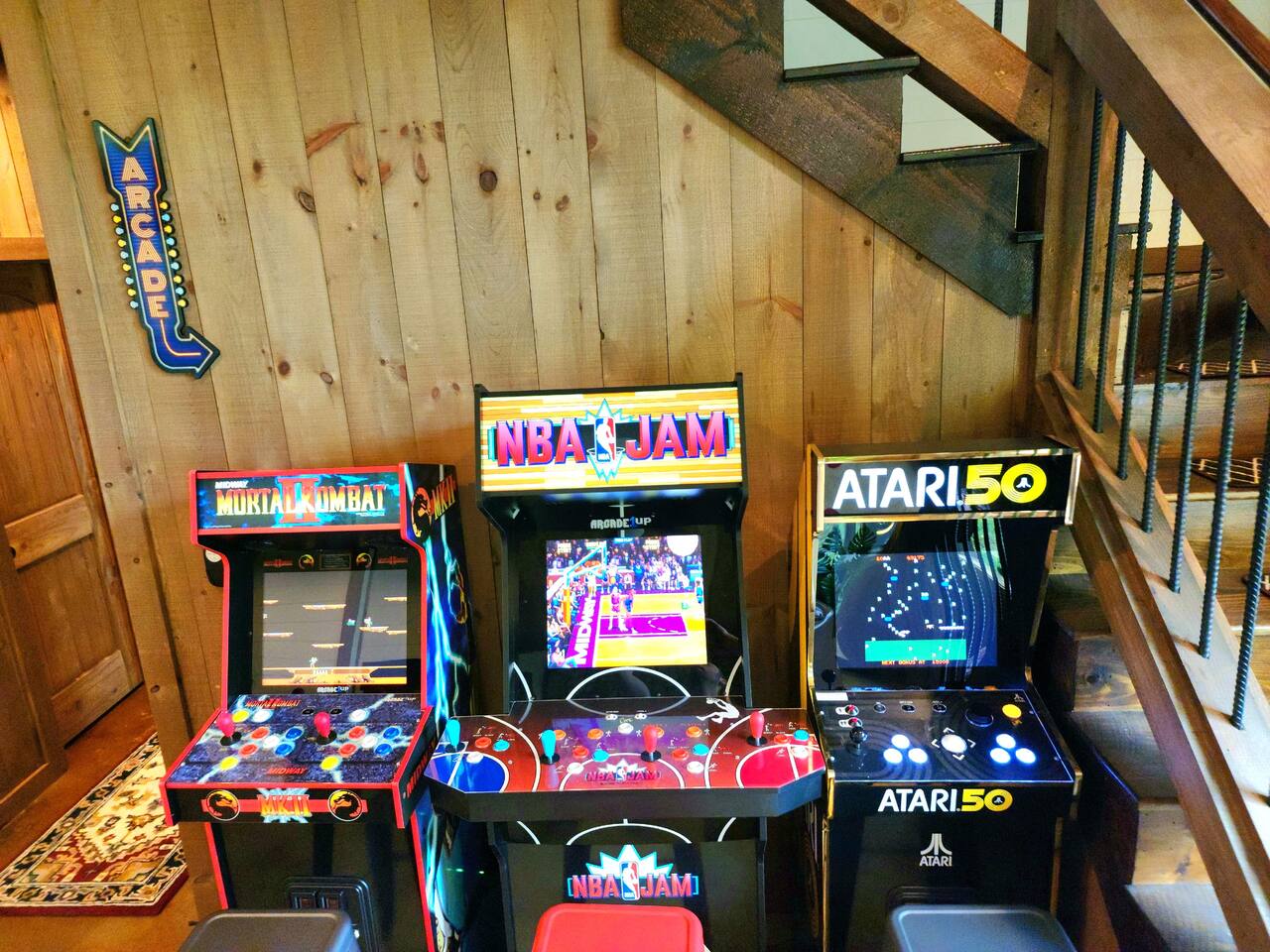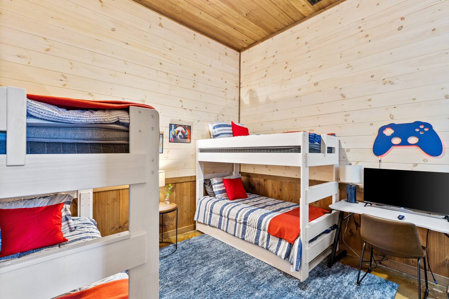 KEY FEATURES > Stunning Blue Ridge mountain views > 15 mins to heart of downtown Blue Ridge > Paved roads door-to-door > 16’ ceilings on main floor, 14’ ceilings in lounge/gameroom, 20’ ceilings in outdoor deck > 5 different wood types throughout the cabin > Views from hot tub and both decks > Fire pit > Fully loaded kitchen > 3 standing arcade machines, shuffleboard table, darts, record player > Covered regulation height basketball court > Loaded wet bar in lounge/gameroom > 2 indoor fireplaces and 1 outdoor wood-burning fireplace > BBQ grill > TVs in every room (and outside on the deck), stream to your heart’s desire > Workstation/desk with monitor looking out over the pasture After enjoying a safe and scenic drive on fully paved roads door-to-door to SkyRidge, step inside and be greeted by ★★striking 16-foot ceilings★★ and floor-to-ceiling windows that frame breathtaking mountain views. The main living room invites you to relax on a plush sofa in front of the fireplace while streaming your favorites on the 65” Smart TV. The multi-level decks are absolutely magnificent. The decks are monumental in height, with the cabin roof soaring a whopping 20’ overhead. We cannot promise you will see them, but if you read our reviews MANY guests rave about the ★★family of deer★★ that frequently graze in the meadow just below and out in front of the decks. Our guests often see them early in the morning and at dusk, and I hope you do too! Downstairs, the lounge and game room is a hub of entertainment with a gas fireplace, tufted leather seating, a fully loaded wet bar, a big screen TV, shuffleboard, darts, and three standing arcade machines. For outdoor fun, challenge your group to some hoop on the regulation height ★★covered basketball court★★. Even on cold nights, socializing in front of the ★★outdoor wood-burning fireplace★★ is so comfy and fun! The decks are furnished with rocking chairs, two live-edge wooden bars, and a cot. Just outside of the lounge/game room on the deck, unwind in the hot tub. Or stroll out to the ★★fire pit★★ to cook smores and enjoy cocktails under the stars. After a day of adventure, retreat to one of three peaceful bedrooms: ✔ Bedroom 1: A main-level sanctuary with a king-sized bed and a private ensuite bathroom featuring dual sinks and a spacious walk-in shower. ✔ Bedroom 2: A cozy lower-level room with a queen-sized bed and access to a full hall Bathroom. ✔ Bedroom 3: Perfect for kids or groups, this lower-level room has two twin-over-twin bunk beds plus two twin trundles. ★★ Kitchen ★★ The kitchen at SkyRidge is fully appointed with modern appliances and everything you need to prepare delicious meals. ✔ Fully-stocked kitchen with modern appliances ✔ Complimentary coffee ✔ Extensive cookware and dinnerware ★★ The Neighborhood ★★ Nestled in a private setting adjacent to the Cohutta Wilderness National Forest, SkyRidge offers the perfect balance of seclusion and convenience. You are perfectly situated between the charming downtowns of McCaysville and Blue Ridge, making it easy to explore the area's best attractions. Nearby activities include: ✔ Fishing for trout on the Toccoa River ✔ Apple picking at Mercier Orchards ✔ Visiting local wineries and breweries ✔ Hiking and mountain biking in the Aska Adventure Area ✔ Riding the Blue Ridge Scenic Railway ✔ Shopping and dining in historic downtown Blue Ridge ★★ Guest Access ★★ You will have private access to the entire cabin and surrounding property. Check-in is simple and convenient with a keypad on the front door; your unique code will be sent before your arrival. Ample parking is available in the spacious driveway. Feel free to work or stream with free, high-speed WiFi available throughout the home. ★★ Getting Around ★★ The cabin is easily accessible year-round via paved roads and a paved driveway, so a 4x4 vehicle is not required and driving is extremely safe for any age. Ample parking is available for multiple vehicles. ★★ House Rules ★★ To maintain the pristine condition of our cabin for all guests, pets are not permitted at this time. ★★ Important Information ★★ Our property is located in a natural setting, and you may encounter local wildlife like deer. We recommend bringing bug spray if you plan to spend time outdoors in the evenings. For your safety and security, exterior security cameras are located on the property.